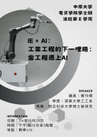本次邀請到明志科技大學博士後研究簡均樺博士,主講「IE × AI:工業工程的下一哩路:當工程遇上AI」